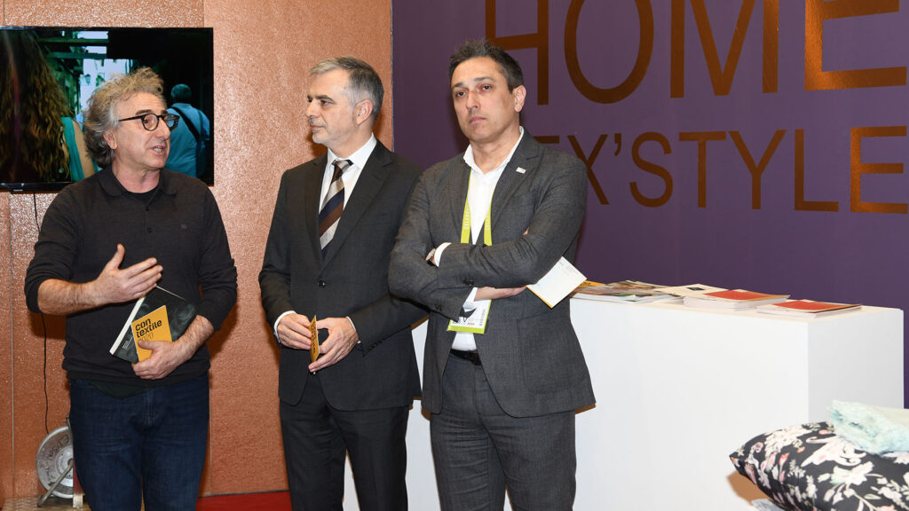 Ricardo Costa, vereador do Desenvolvimento Económico, que se encontra a visitar empresas de Guimarães na feira de têxtil-lar e Mário Jorge Machado, presidente da ATP, participaram na apresentação desta iniciativa que decorreu no stand da Associação Selectiva Moda, também presente na feira para com o projecto The Portuguese Home Tex’style, apoiar a internacionalização das empresas do sector.